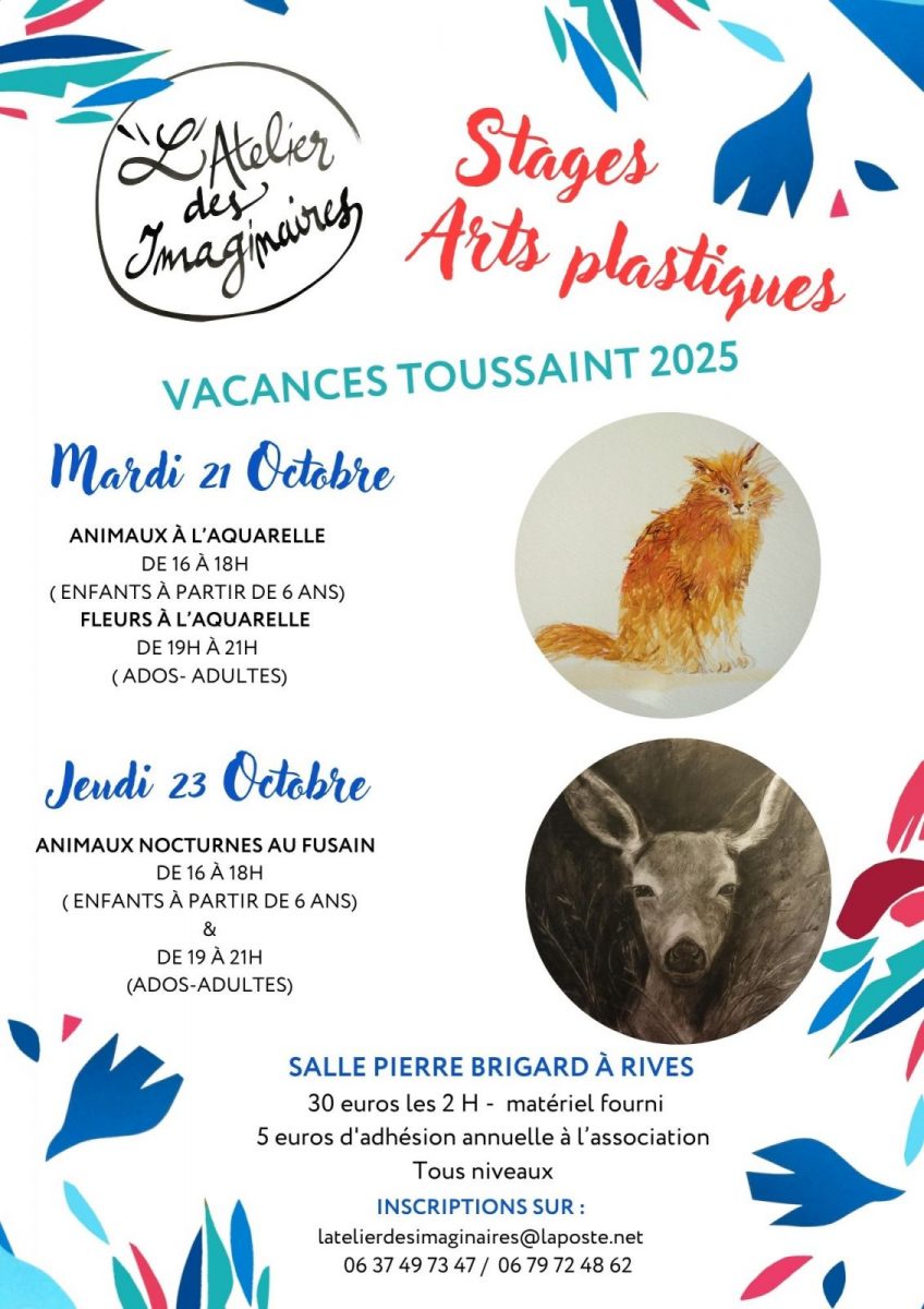 Stages arts plastiques, aquarelle et fusain pour enfants à partir de 6 ans, ados adultes encadré par artistes intervenantes de l'association L'Atelier des Imaginaires.