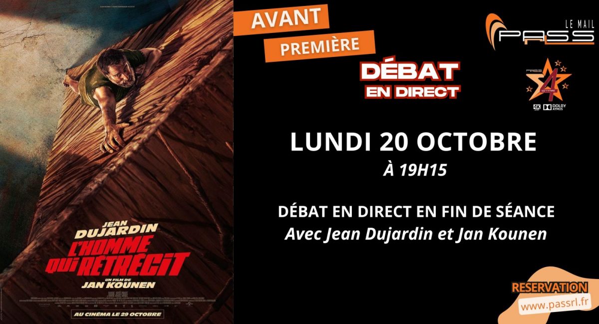 Le film sera suivi d'une projection du débat en direct avec Jean Dujardin et Jan Kounen. L'homme qui rétrécit est un film de science-fiction/aventure réalisé par Jan Kounen.