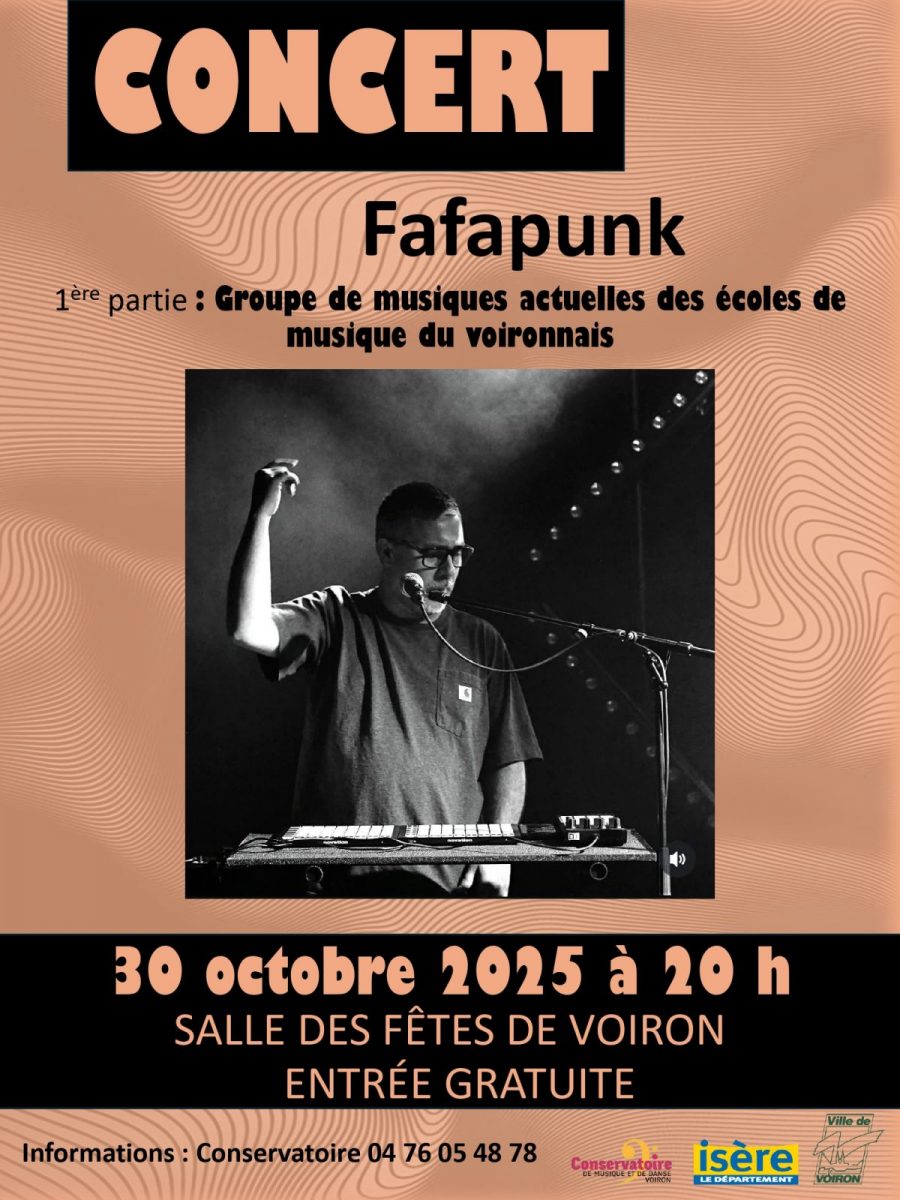 Concert du groupe Fafapunk dont la première partie sera une présentation des créations de stages, encadrés en partie par Samson du groupe lui-même, des élèves des écoles de musique du voironnais.