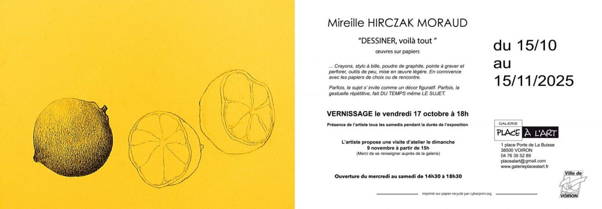 L'artiste Mireille Hirczak Moraud vous invite au vernissage de son exposition d'oeuvres sur papier "Dessiner, voilà tout" !