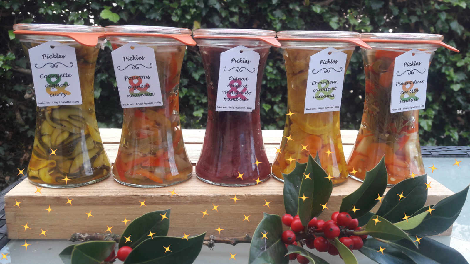 - Une gamme de recettes créatives, associant saveurs et textures originales, cuisinées au fil des saisons : confitures extra (très fruitées et moins sucrées), confits de fleurs, gelées, pickles, chutneys… Demander la carte des recettes par téléphone ou mail.